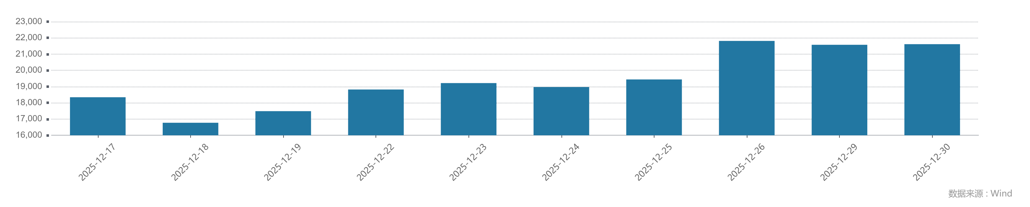 12月26日至12月30日三个交易日,A股成交额分别达到2.18万亿元、2.16万亿元、2.16万亿元。